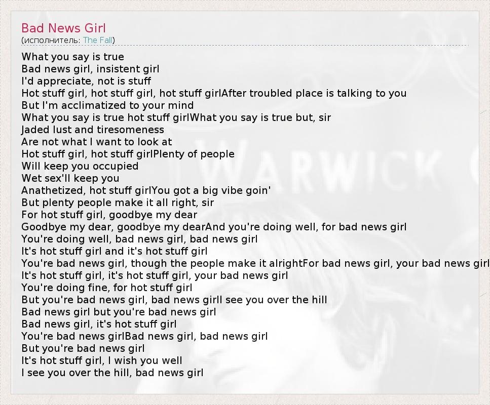 А как ты думаешь, о чем песня "Bad News Girl" ?