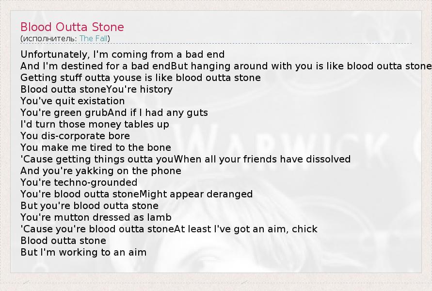 А как ты думаешь, о чем песня "Blood Outta Stone" ?