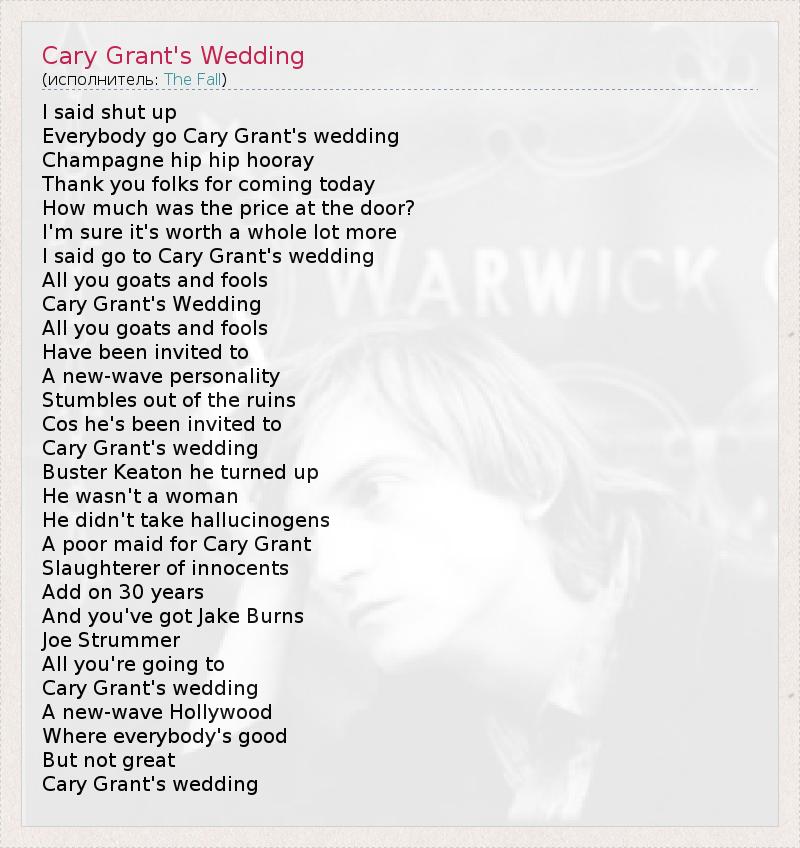 А как ты думаешь, о чем песня "Cary Grant's Wedding" ?