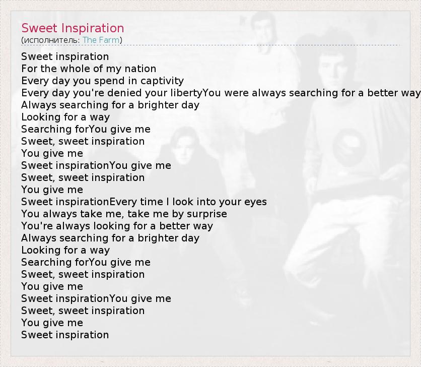 А как ты думаешь, о чем песня "Sweet Inspiration" ?