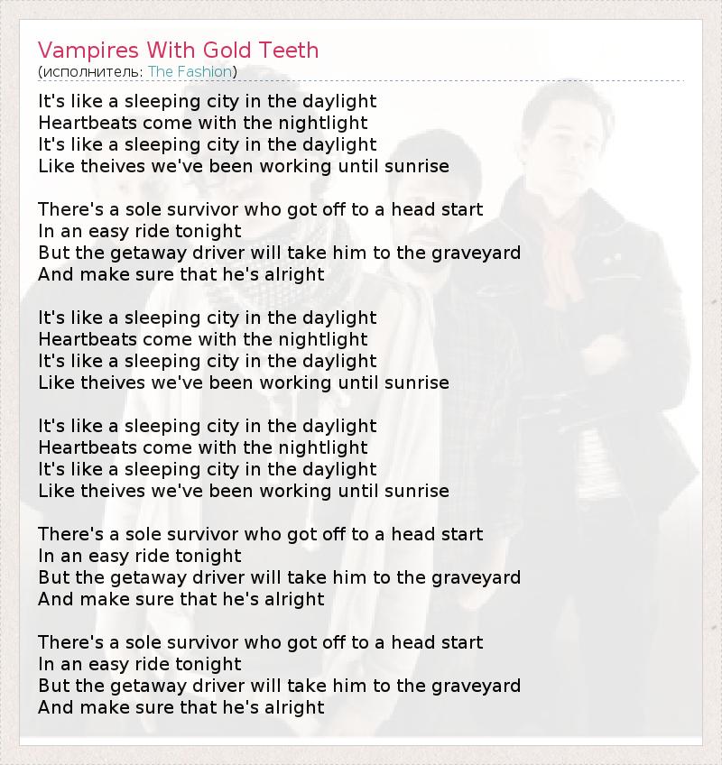 А как ты думаешь, о чем песня "Vampires With Gold Teeth" ?