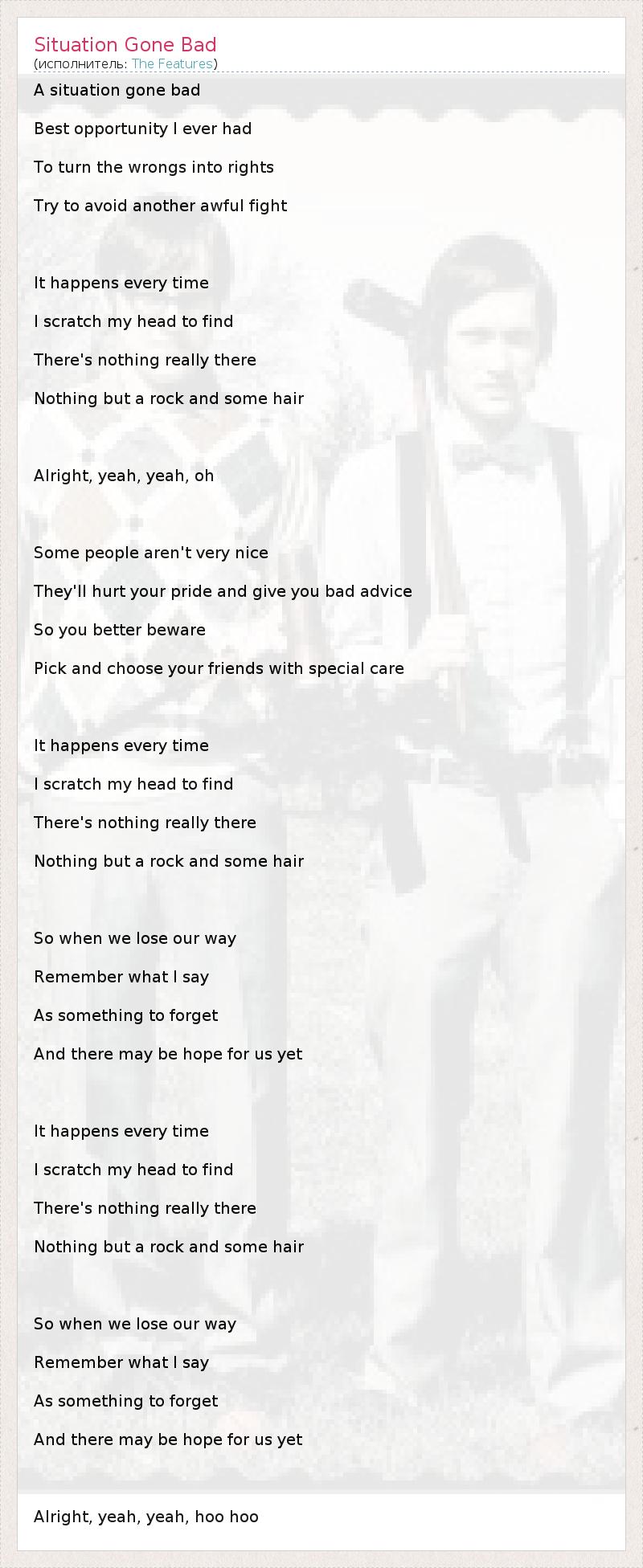 А как ты думаешь, о чем песня "Situation Gone Bad" ?