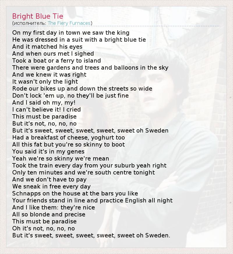 А как ты думаешь, о чем песня "Bright Blue Tie" ?