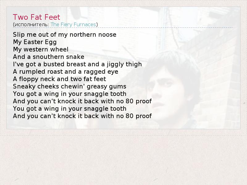 А как ты думаешь, о чем песня "Two Fat Feet" ?