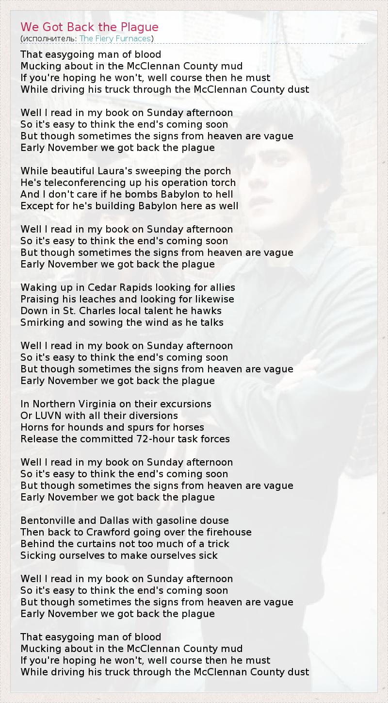 А как ты думаешь, о чем песня "We Got Back the Plague" ?