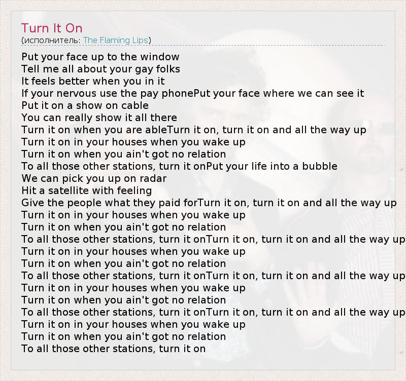 To all those other stations, turn it onTurn it on, turn it on and all the way up