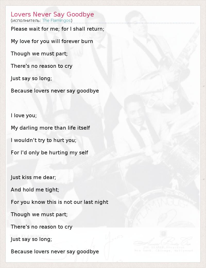 А как ты думаешь, о чем песня "Lovers Never Say Goodbye" ?