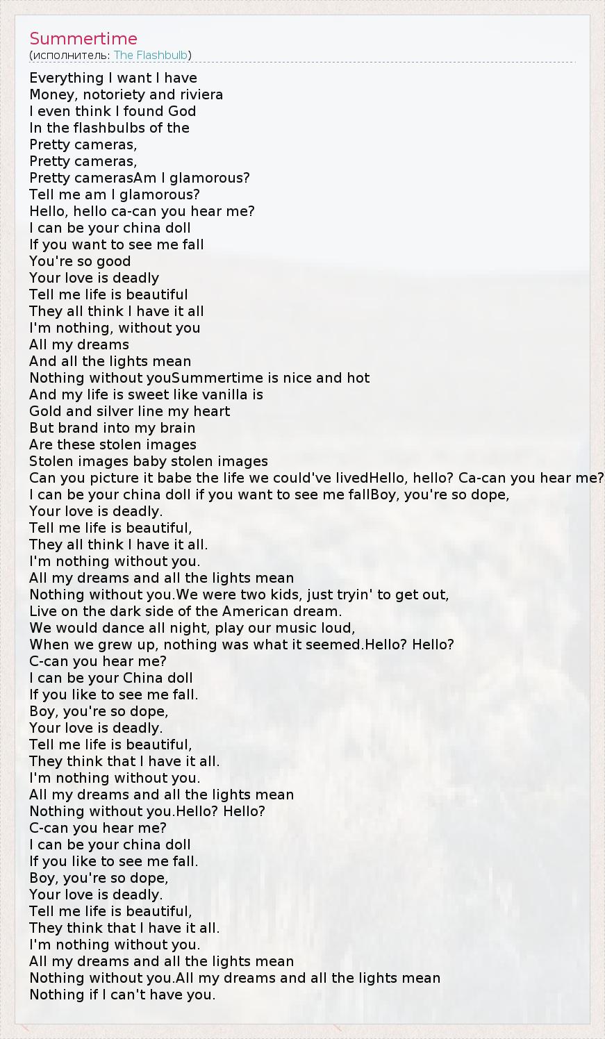А как ты думаешь, о чем песня "Summertime" ?