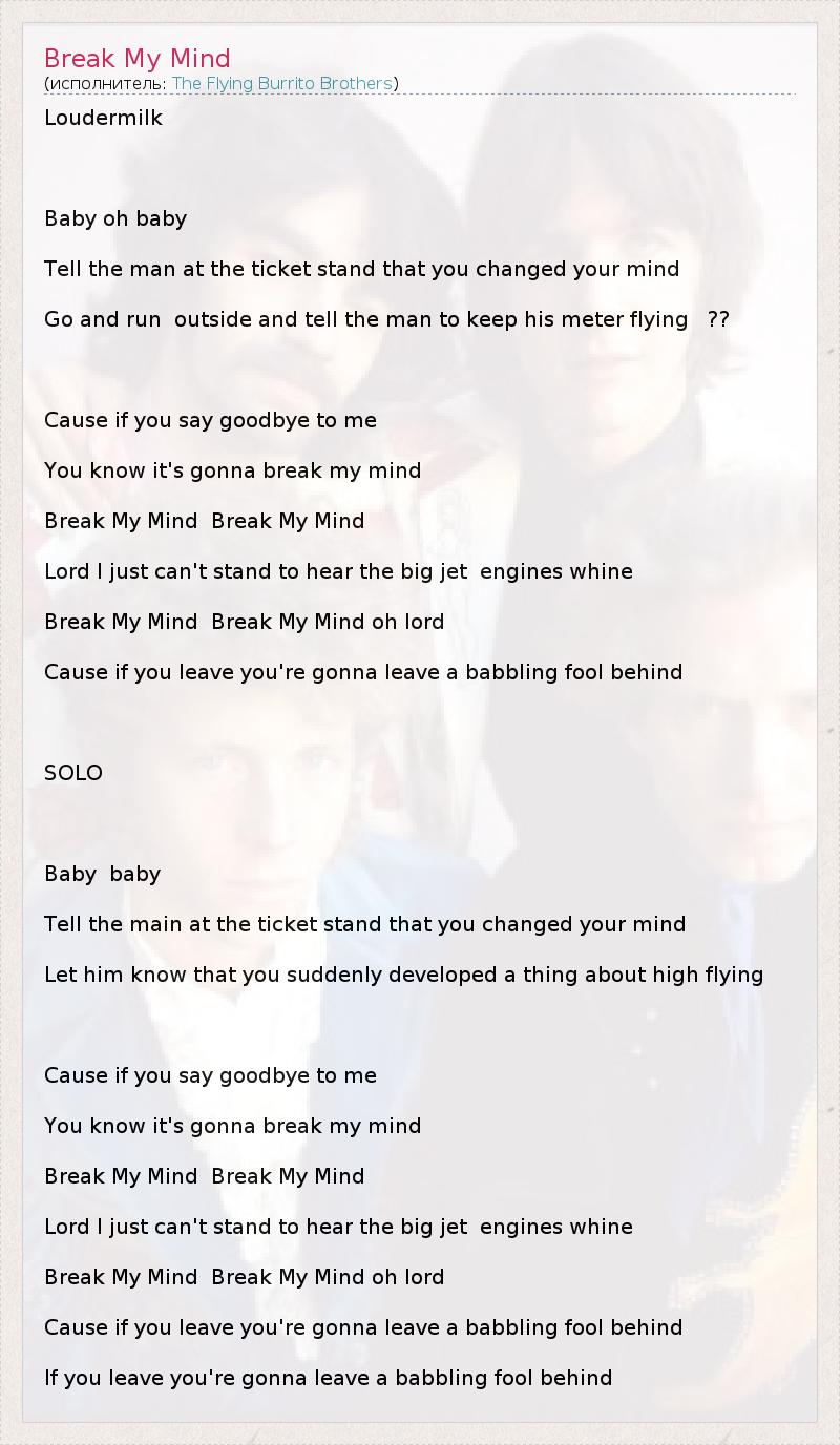 Break My Mind  Break My Mind oh lord