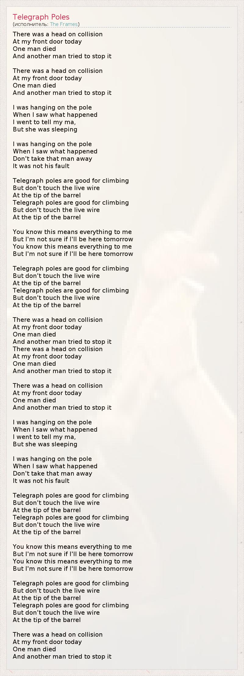 А как ты думаешь, о чем песня "Telegraph Poles" ?