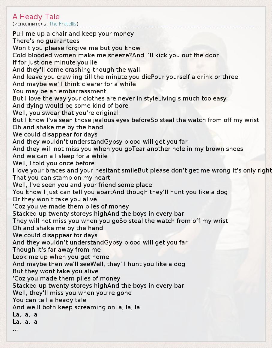 А как ты думаешь, о чем песня "A Heady Tale" ?