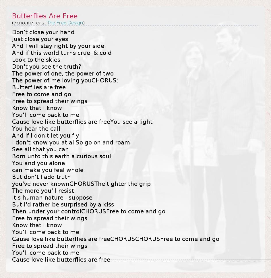 А как ты думаешь, о чем песня "Butterflies Are Free" ?