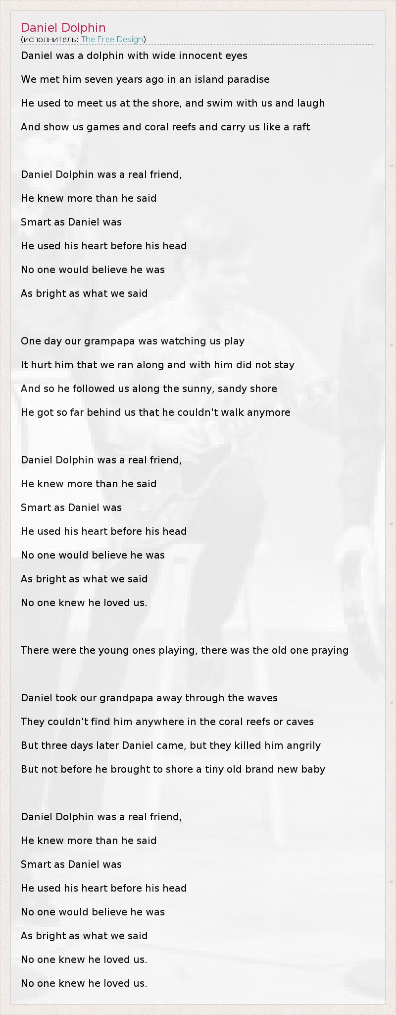 А как ты думаешь, о чем песня "Daniel Dolphin" ?