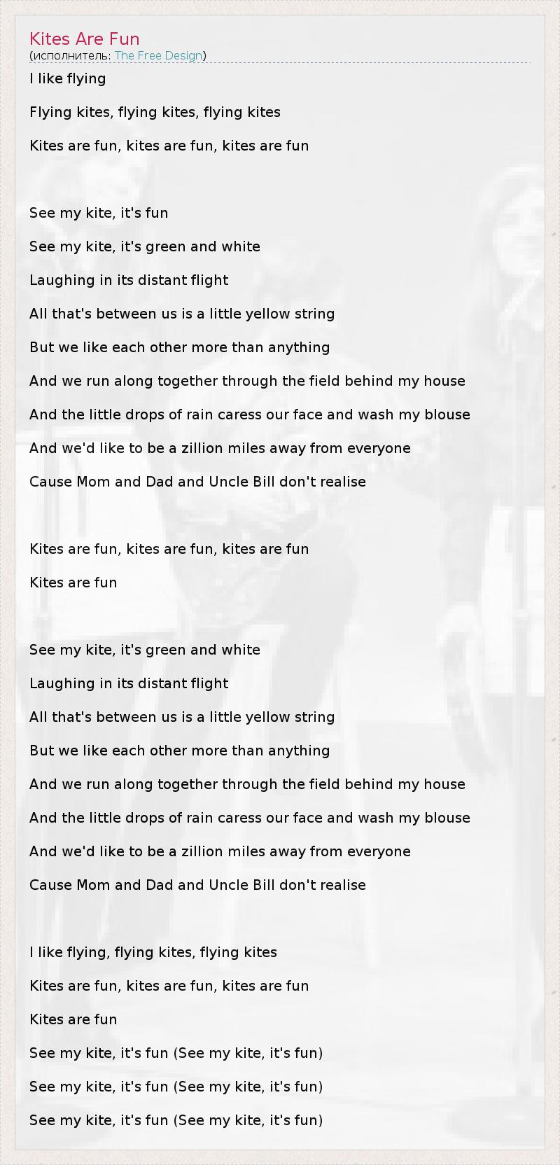 А как ты думаешь, о чем песня "Kites Are Fun" ?