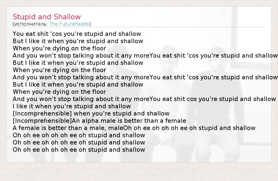А как ты думаешь, о чем песня "Stupid and Shallow" ?