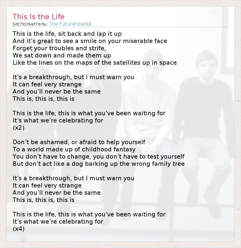 А как ты думаешь, о чем песня "This Is the Life" ?