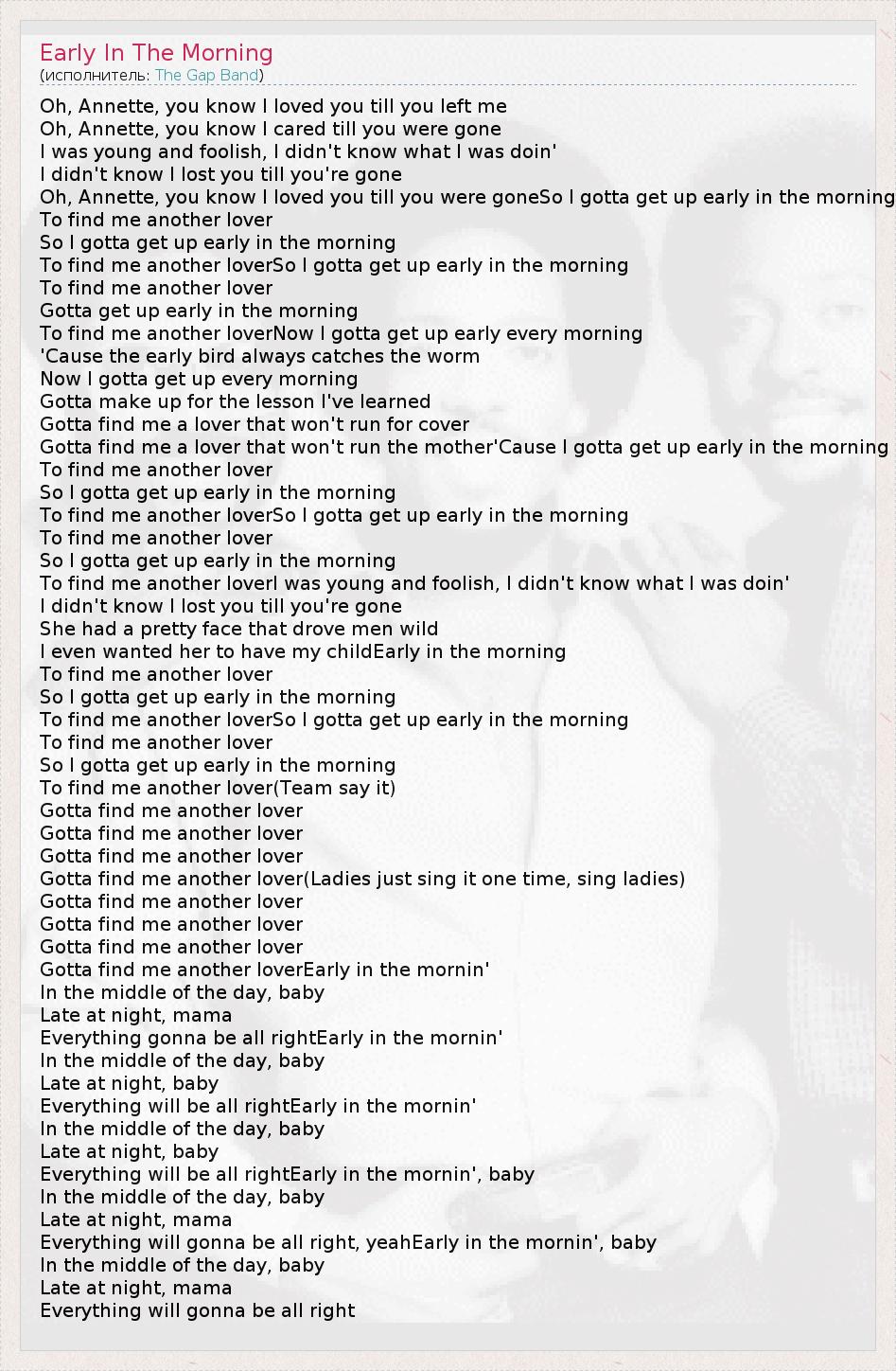 А как ты думаешь, о чем песня "Early In The Morning" ?