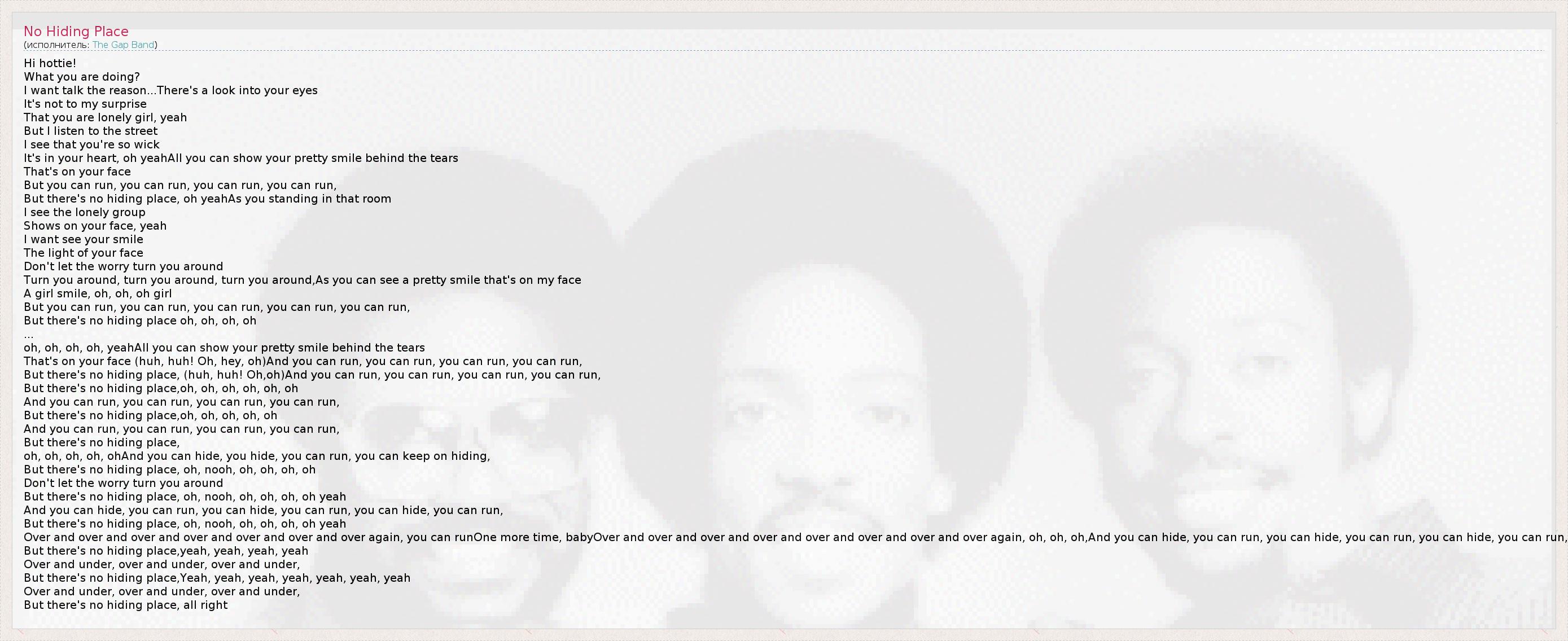 А как ты думаешь, о чем песня "No Hiding Place" ?