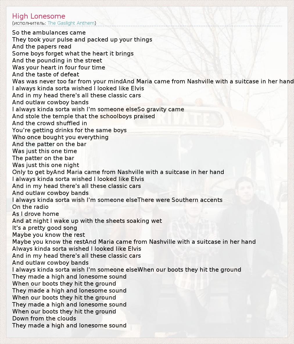 Это интересно:The Gaslight Anthem - это панк-группа из города Нью-Брунсвик, штат Нью-Джерси. С момента образования группы в 2005 году, они успели выпустить четыре альбома и два EP. Журнал Kerrang! описал The Gaslight Anthem как "лучшую группу которую вы услышите в 2008 году". TGA добились своего уникального звучания, смешав воедино элементы блюза, классического рока и панк рока.Состав группы: Brian Fallon (вокал, гитара), Alex Levine... продолжение