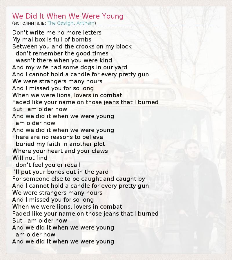 ГлавнаяИсполнителиThe Gaslight AnthemWe Did It When We Were Young