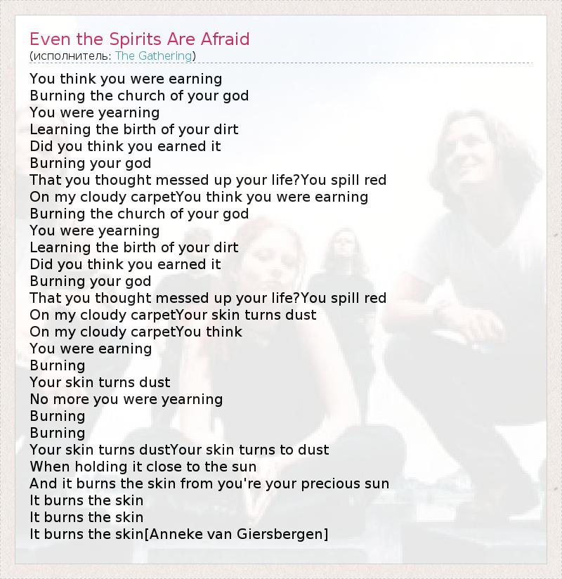 А как ты думаешь, о чем песня "Even the Spirits Are Afraid" ?