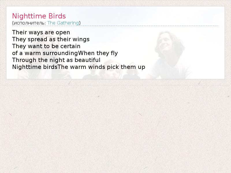 А как ты думаешь, о чем песня "Nighttime Birds" ?