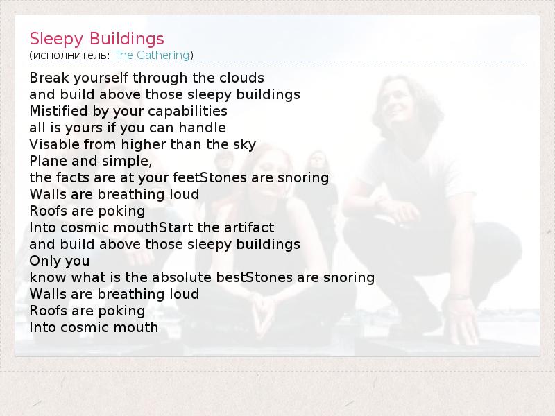 А как ты думаешь, о чем песня "Sleepy Buildings" ?