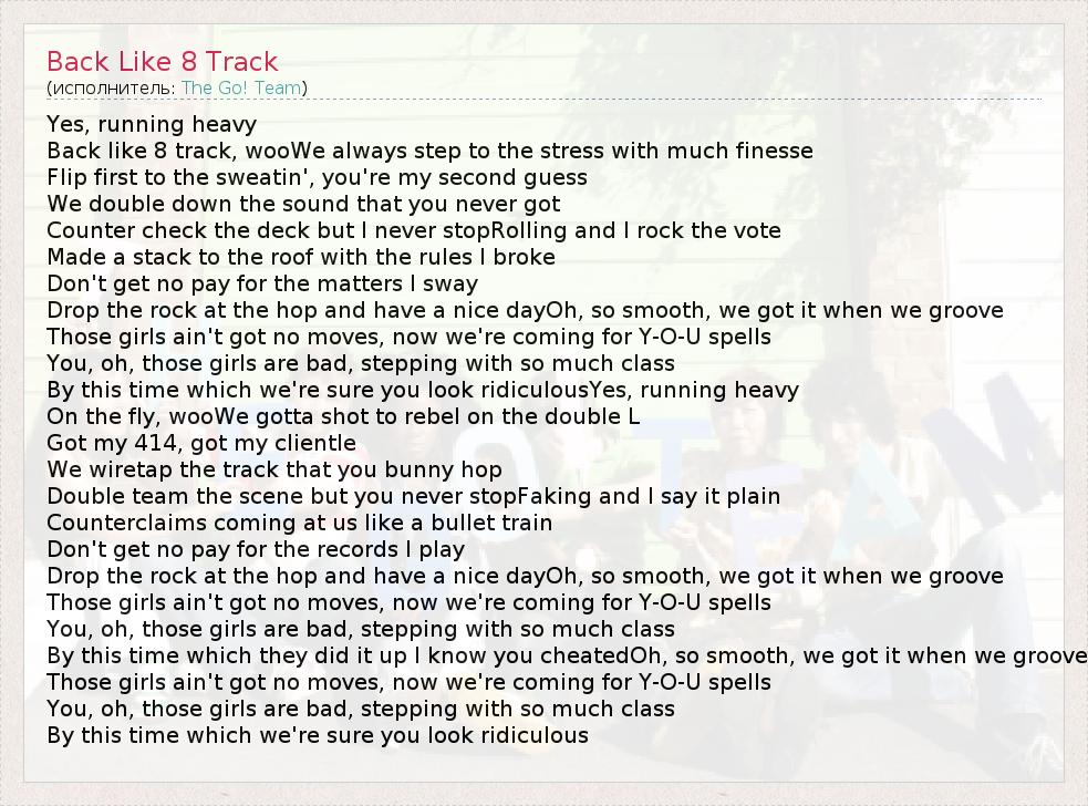 А как ты думаешь, о чем песня "Back Like 8 Track" ?