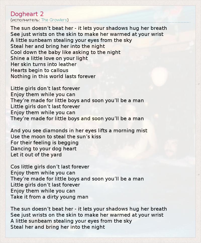 А как ты думаешь, о чем песня "Dogheart 2" ?