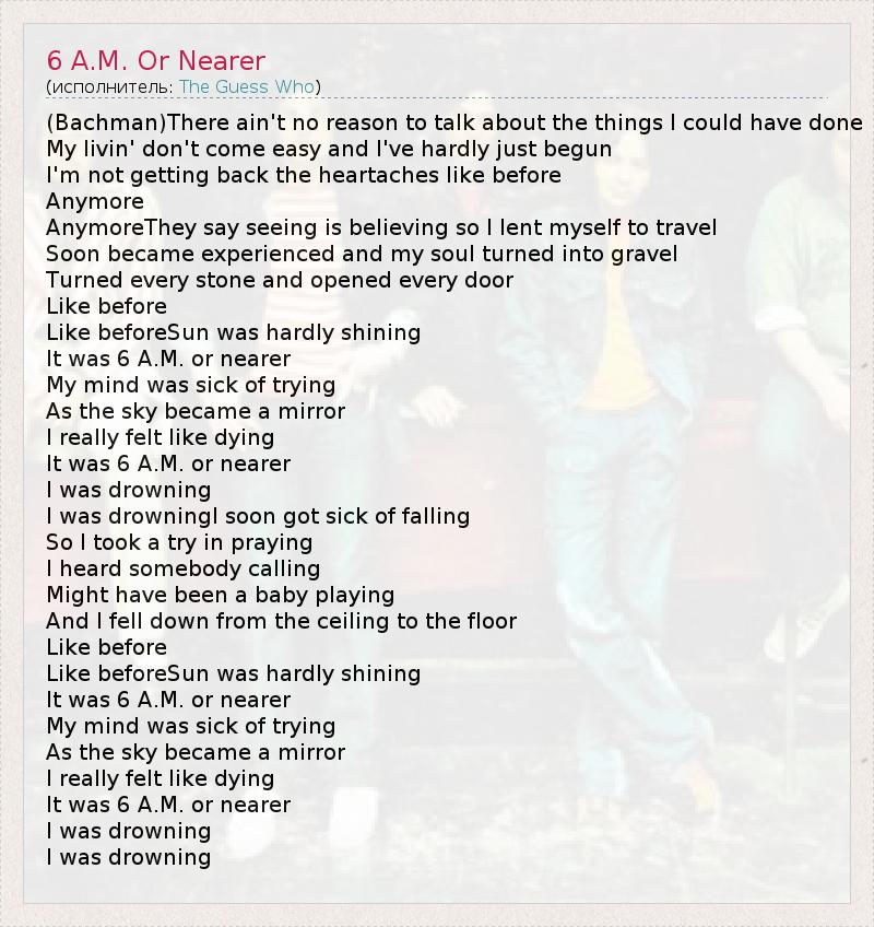 А как ты думаешь, о чем песня "6 A.M. Or Nearer" ?
