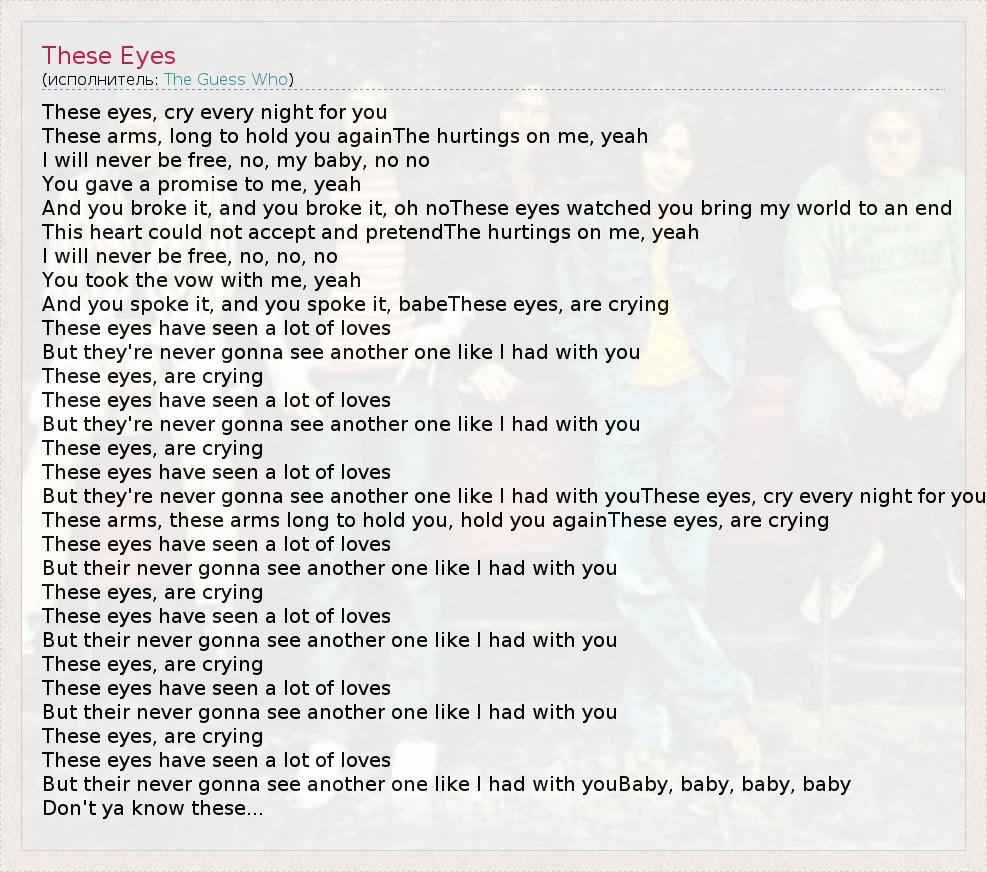 А как ты думаешь, о чем песня "These Eyes" ?