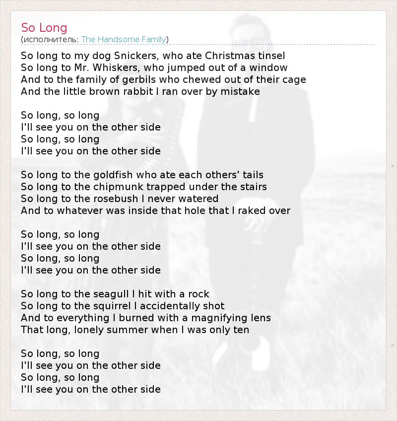А как ты думаешь, о чем песня "So Long" ?