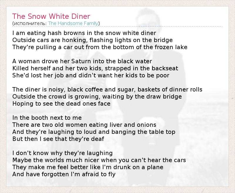 А как ты думаешь, о чем песня "The Snow White Diner" ?