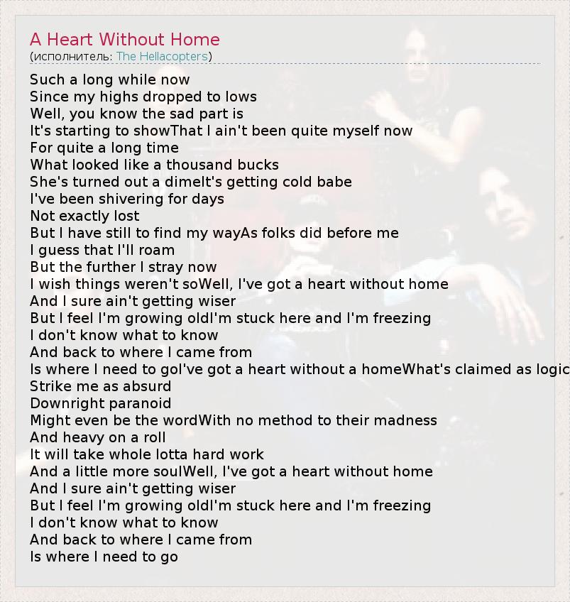 А как ты думаешь, о чем песня "A Heart Without Home" ?