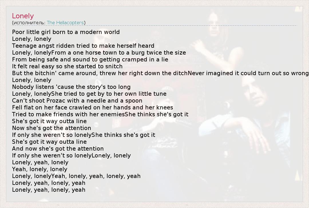 Lonely, lonelyShe tried to get by to her own little tune