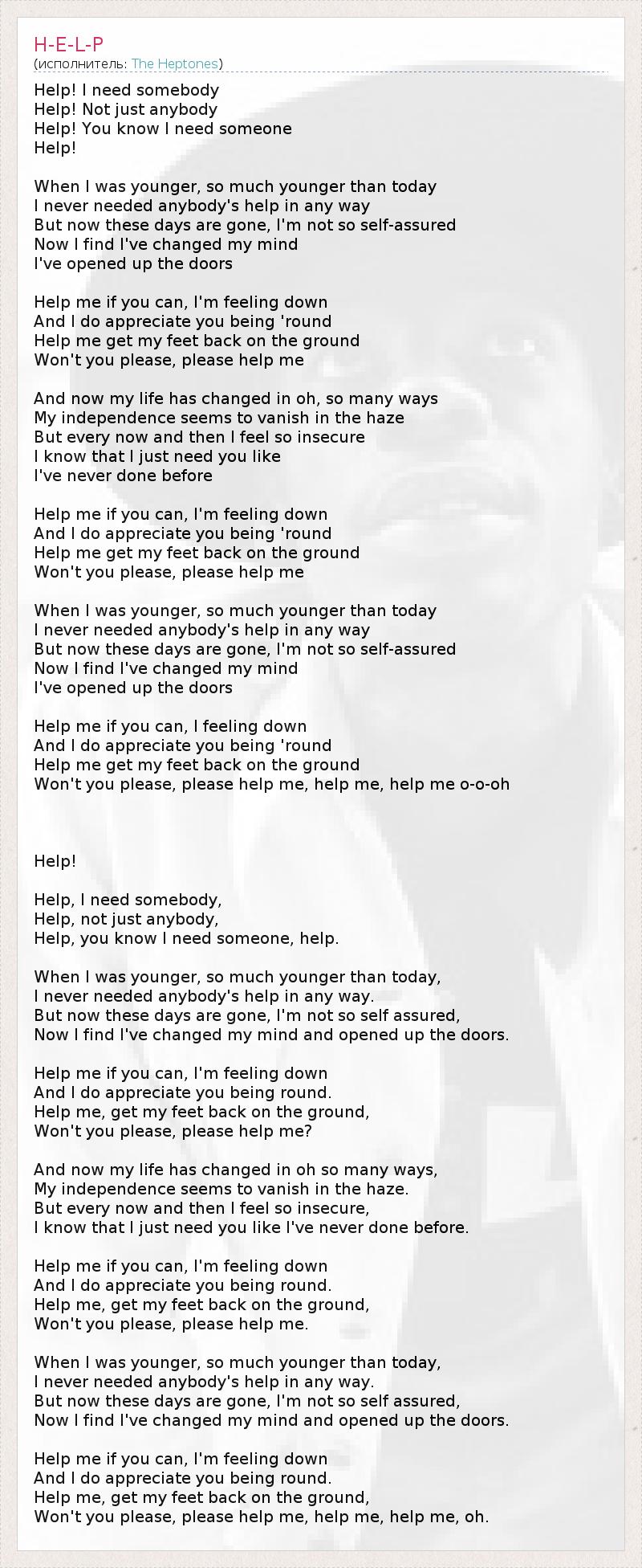 Help, you know I need someone, help.