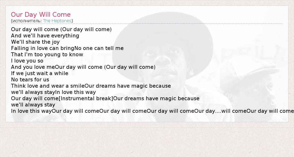 А как ты думаешь, о чем песня "Our Day Will Come" ?