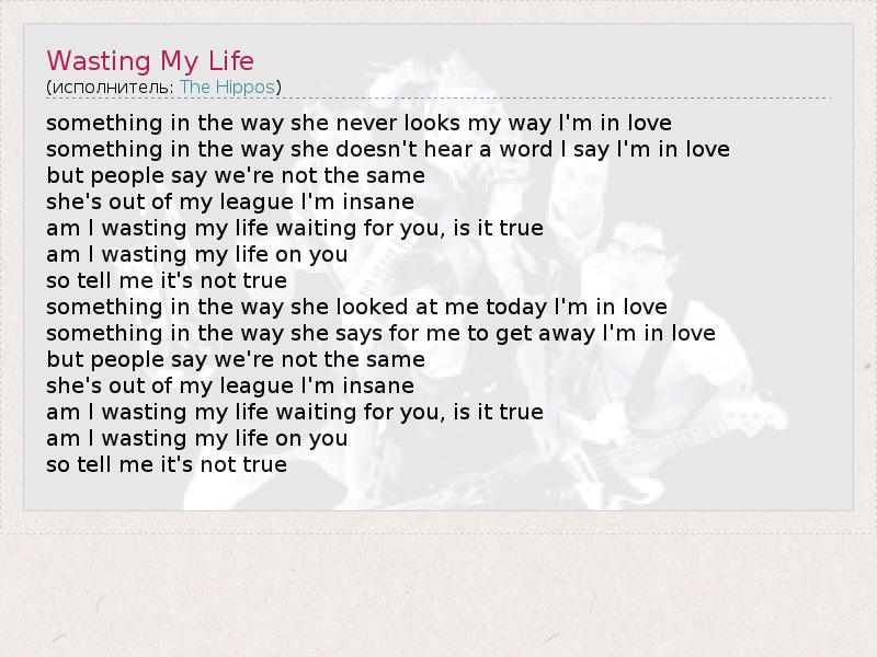 А как ты думаешь, о чем песня "Wasting My Life" ?