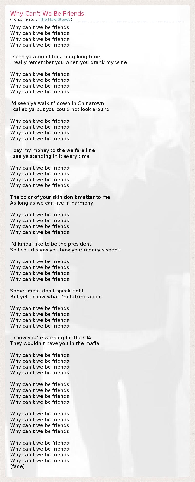 А как ты думаешь, о чем песня "Why Can't We Be Friends" ?