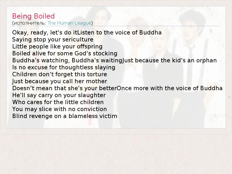 А как ты думаешь, о чем песня "Being Boiled" ?