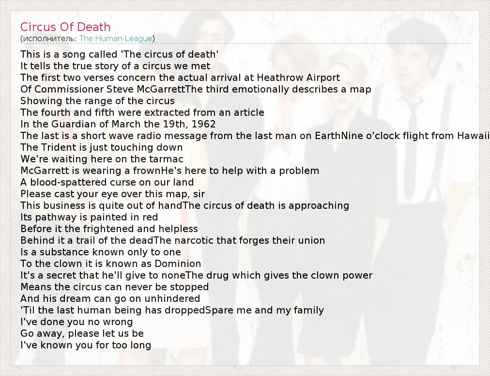 А как ты думаешь, о чем песня "Circus Of Death" ?