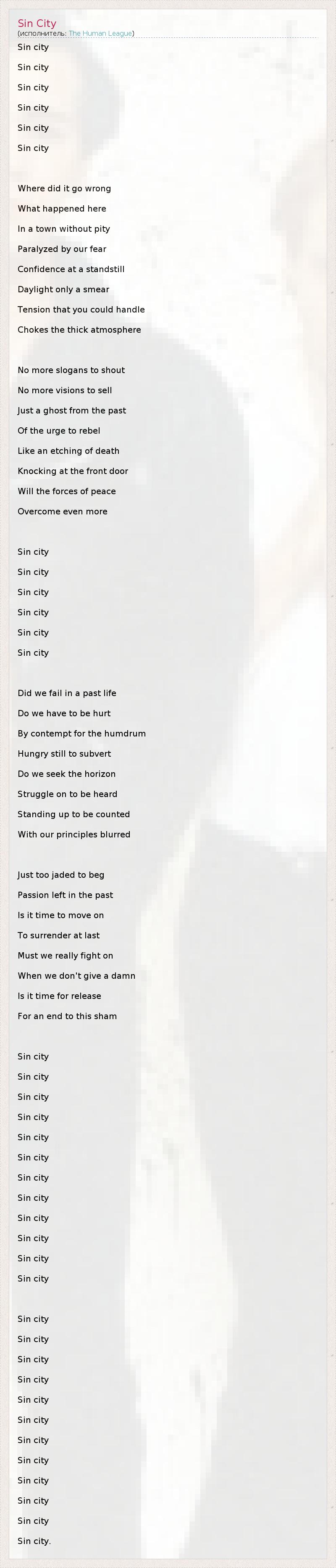 А как ты думаешь, о чем песня "Sin City" ?