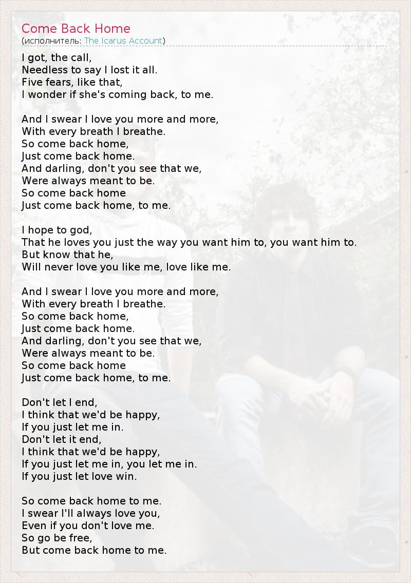 А как ты думаешь, о чем песня "Come Back Home" ?