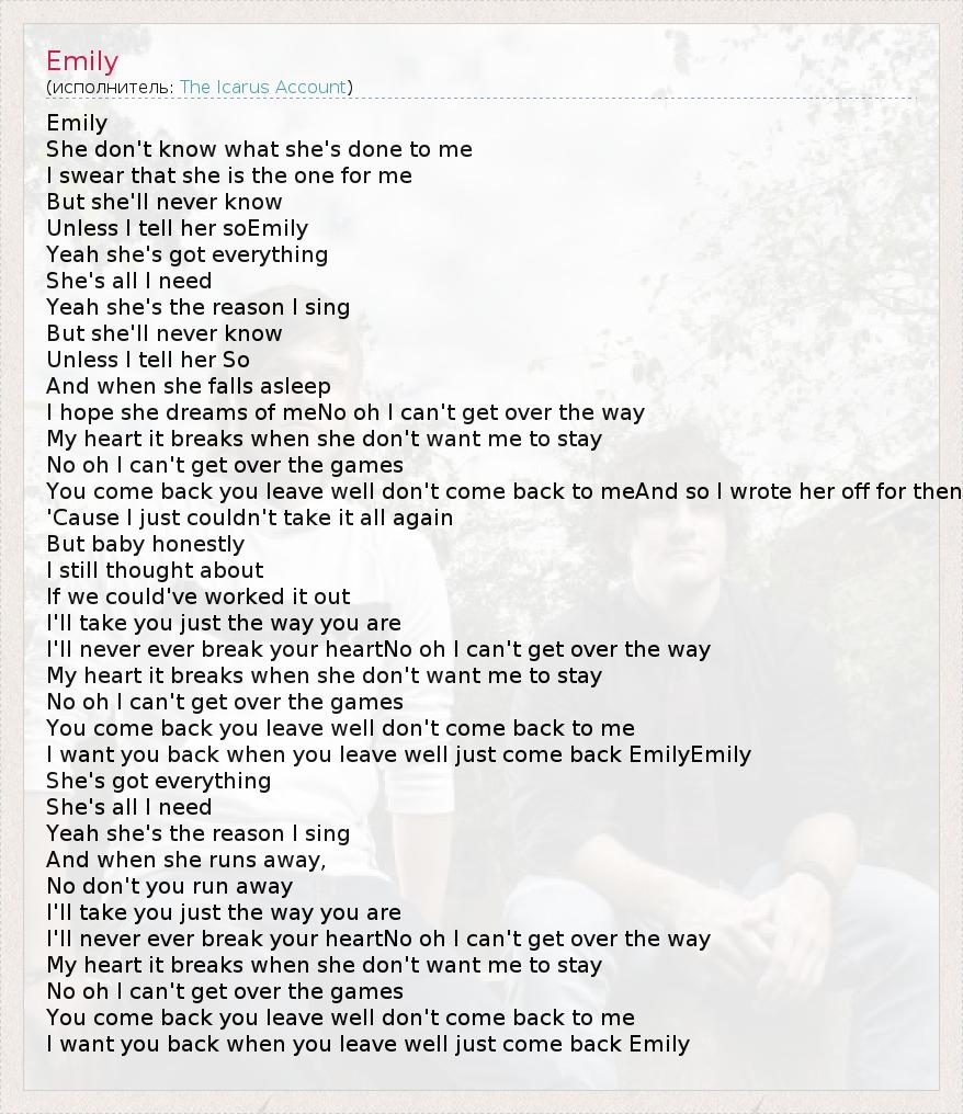 I want you back when you leave well just come back EmilyEmily