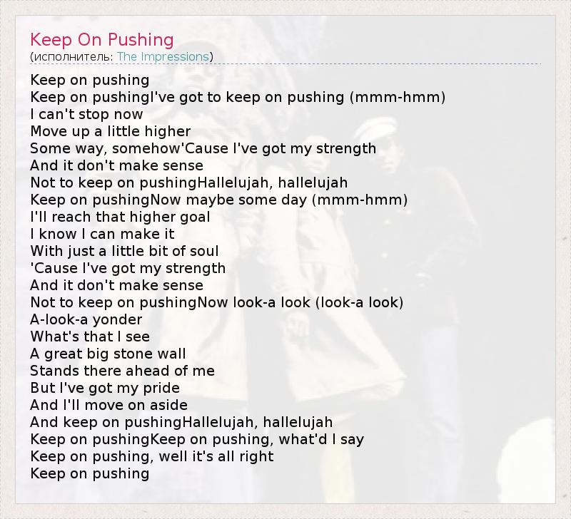 Keep on pushingI've got to keep on pushing (mmm-hmm)