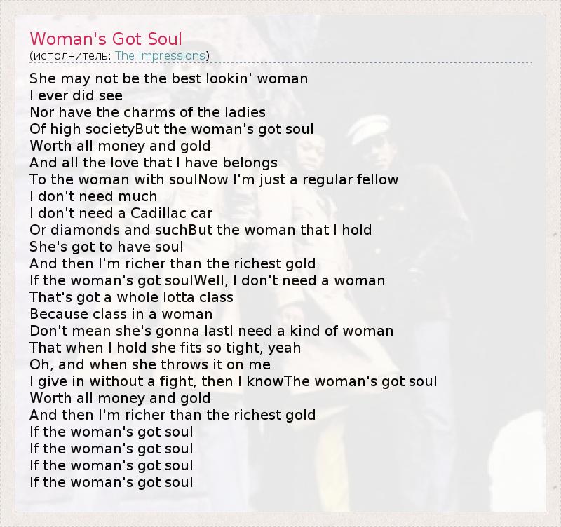 If the woman's got soulWell, I don't need a woman