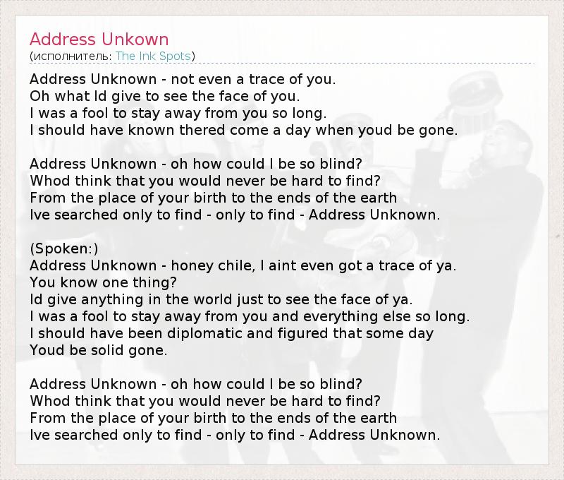 А как ты думаешь, о чем песня "Address Unkown" ?