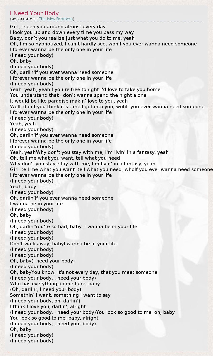 А как ты думаешь, о чем песня "I Need Your Body" ?