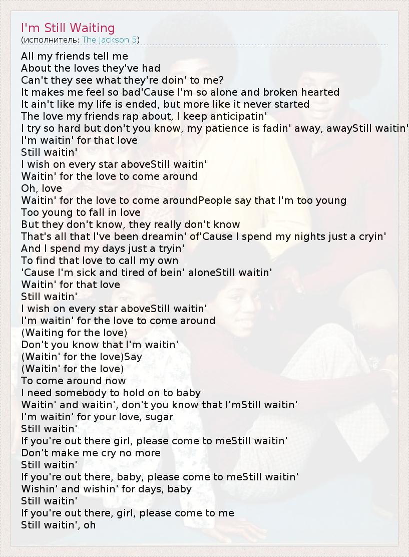Waitin' and waitin', don't you know that I'mStill waitin'
