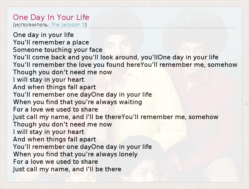 А как ты думаешь, о чем песня "One Day In Your Life" ?